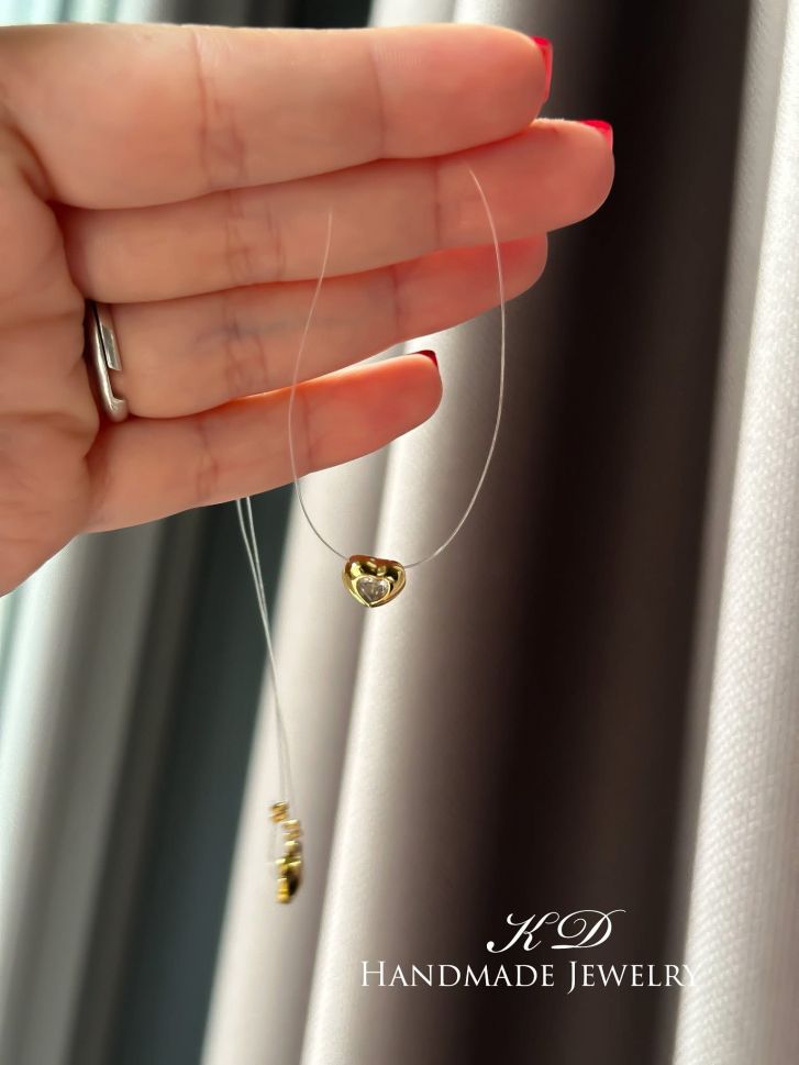 Изработено от фина безцветна корда и стоманени елементи, с позлатено сърчице, инкрустирано със сияен цирконий.